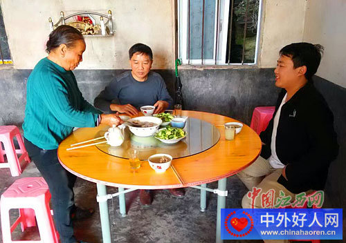 66岁的饶泽亮是文树人结对帮扶的贫困户,8年前,其子患上糖尿病,沉重的医疗支出让家庭一贫如洗,3年前,饶泽亮本人也不幸中风,右侧手脚便僵硬地无法动弹。当时,饶泽亮妻子要去县城医院照顾儿子,洗衣做饭便成了难题。一筹莫展之际,文树人了解到饶泽亮家中的困难,心中总是挂念着,时不时就往他家中跑,关心他的衣食住行。