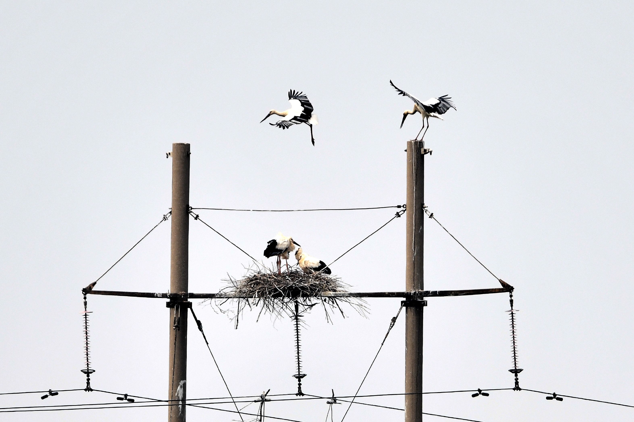 这是3月2日在山东黄河三角洲国家级自然保护区拍摄的东方白鹳(无人机照片)。新华社发(杨斌 摄)