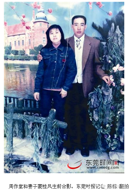 湖南籍夫妇周作堂和蒙桂凤晚班时,骑着单车转入黄公坑桥附近的同聚街,与一辆掉头的公交发生剐蹭,夫妻俩双双倒地,周作堂和蒙桂凤的脑部受到重创,血流不止,妻子蒙桂凤当场昏迷。经过院方一周的抢救,最终没有抢救过来,周作堂于1月30日下午5时去世,而6个小时后,蒙桂凤也撒手人寰。