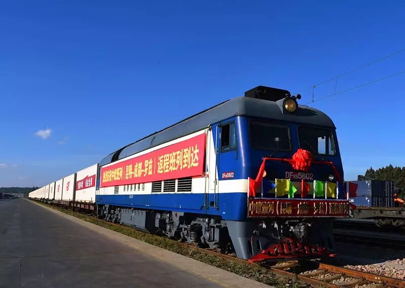 2015年11月30日,中欧班列(昆明—成都—罗兹)返程到达昆明王家营铁路集装箱中心站。新华社记者杨宗友摄