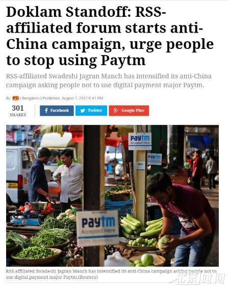 印度民族主义极端组织国民志愿团附属的右翼组织Swadeshi Jagran Manch号召抵制“印度版支付宝”,甚至还呼吁印度政府出于经济和安全原因禁止中国对相关公司进行投资。