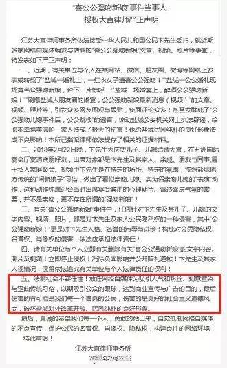 后续2:今天,“喜公公强吻新娘”事件当事人,通过律所发布了一篇通篇感叹号的“严正声明”,称网传“强吻”内容不实,只是做了“看似亲吻儿媳、实为假亲儿媳”的“表演”。