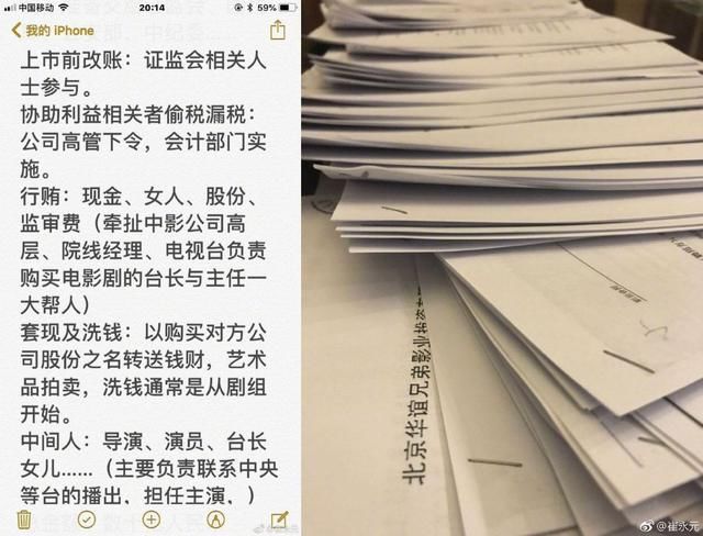 从微博内容来看,该起事件牵扯的人员数量可能是惊人的:微博以爱猫安娜的口吻诉说,透露该起事件牵扯到许多名人,而文件也将递交给相关部门;图三的文字叙述中介绍了事件相关参与人员,包括证监会、某公司高管和会计部门、电视台、电影院线等多个行业,如似“一条龙”,各个行业都有过分工和参与;而图四中,似有深意地突出“北京华谊兄弟影业”等字样,不免引人猜测。