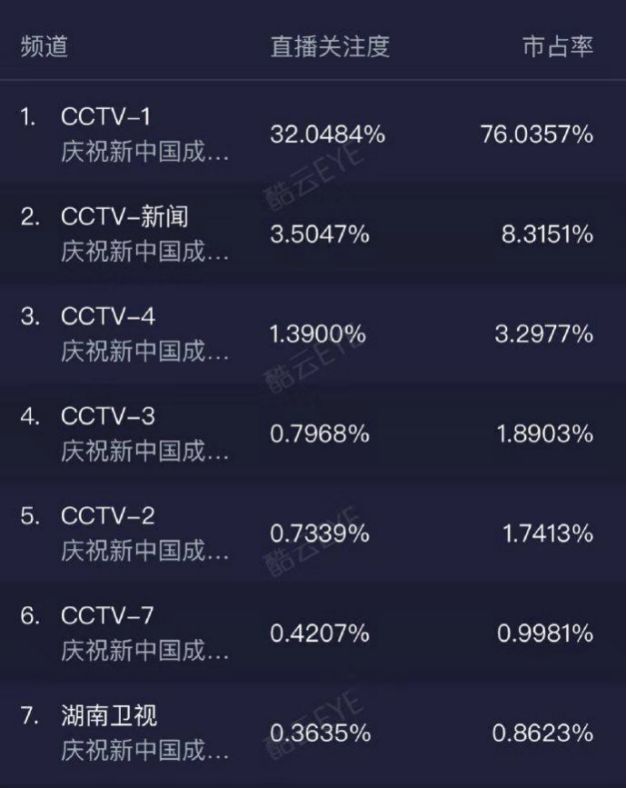 据统计,昨天的阅兵,收视率惊人,仅中央一套就达到了32%还多,市场占有率76%还多!