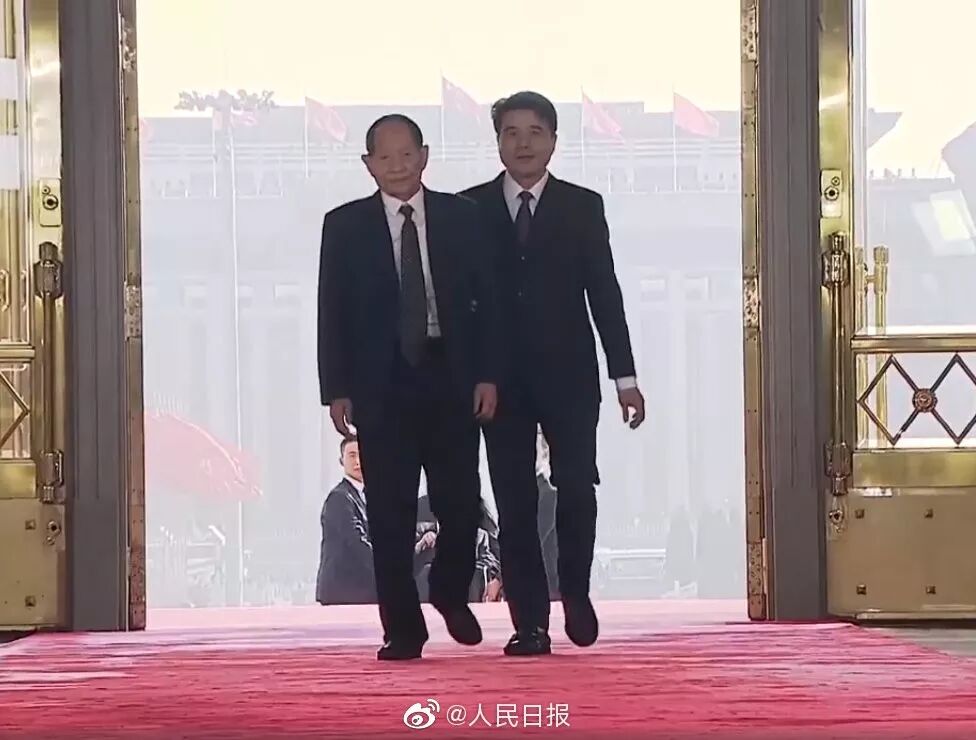 共和国勋章获得者进入人民大会堂。图源:人民日报微博