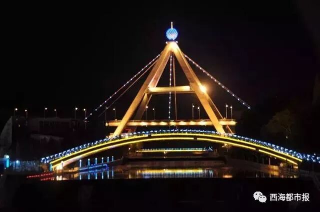 矗立在西宁市中心地带的昆仑桥是近年来省城城建变化的标志,独特的设计凸现西宁的都市气息。特别是现在,当夜幕降临时,昆仑桥与中心广场及周边的高层建筑上的灯光交相辉映,让夏都的夜景更加美丽。