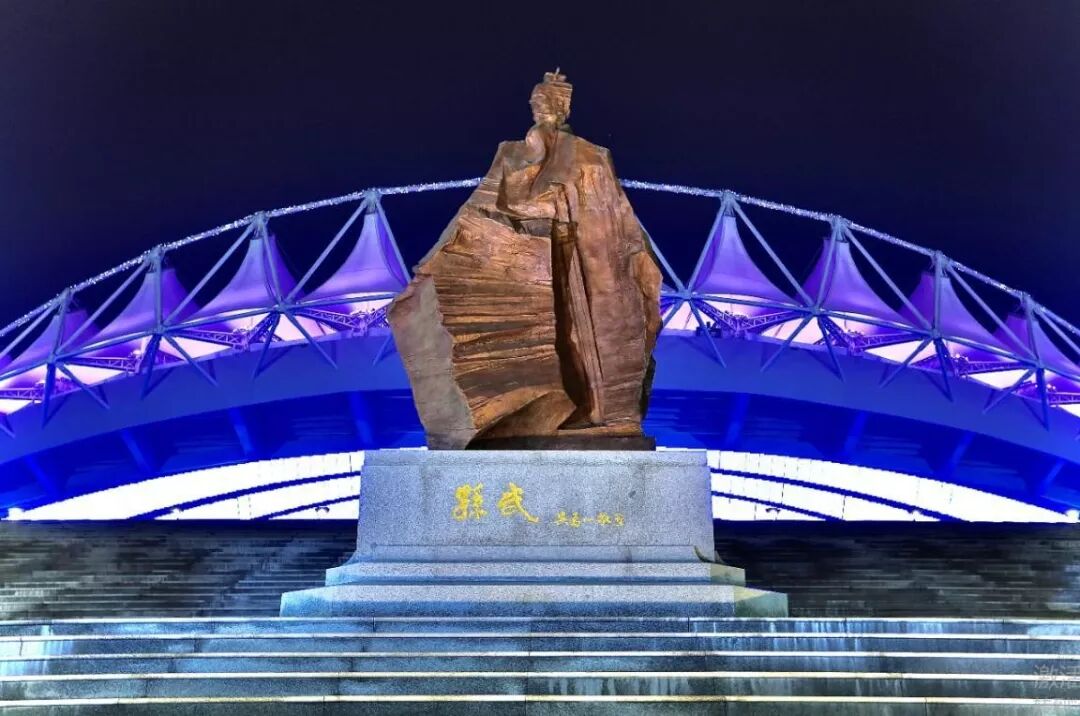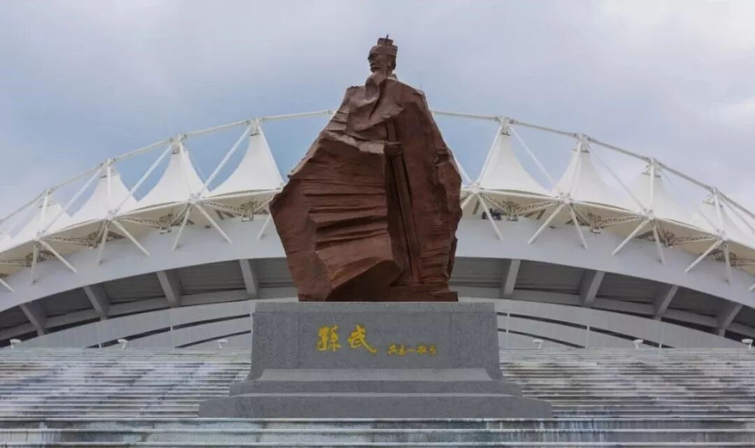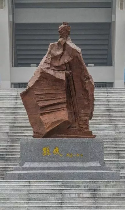 塑像中孙武右手持剑立身,左手背于身后手持简牍,彰显这位东方兵圣秉持“文武之道”,含蓄的隐剑与显见的简牍兵书,显隐相顾,一张一弛,似乎意在表明,亮剑未必有所指,这一形态显现的丰富讯息比起直击敌人更有意味、更具价值。剑,自“虚”处着手,自崇尚和平的军事思想深处向外生长。表达了尚武而不黩武,“不战而屈人之兵”,雕塑定格在虚实相生的瞬间——中国风骨、东方气韵、文武之道,极为传神的捕捉了兵圣孙武军事思想的灵魂。