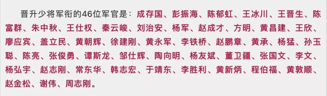 此番晋升少将军衔的46位军官是——