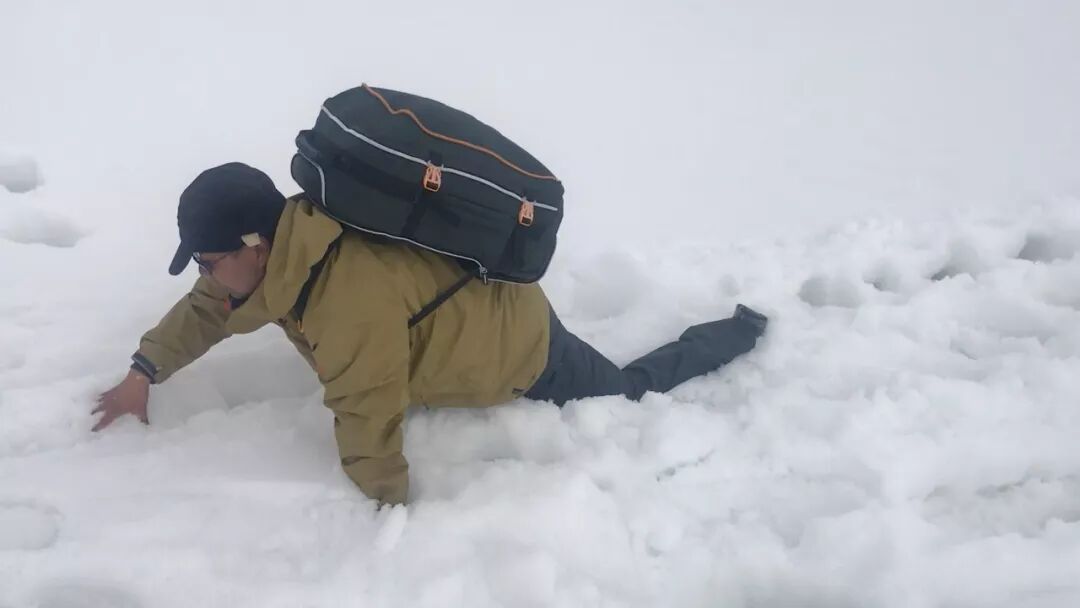 “徒步两天攀至海拔6500米的珠峰前进营地,在山上一度出现幻觉,下山后双脚被水泡填满。”