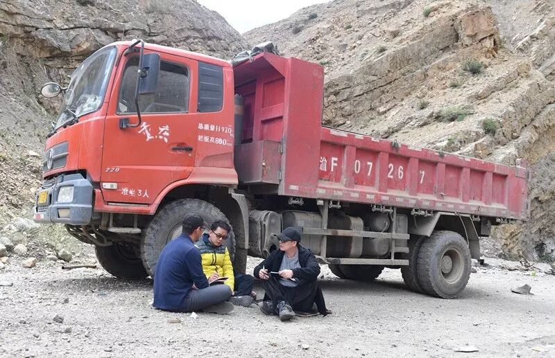 2019年8月1日,西藏分社分党组成员、总编室常务副总编辑罗博(右一)、副总编辑张京品(左二)在平均海拔4000米以上的阿里地区札达县萨让乡采访。(新华社记者 晋美多吉 摄)