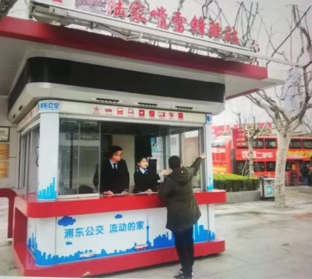 在上海滩高耸的东方明珠广播电视塔下,“浦东公交陆家嘴雷锋驿站”位于世纪大道陆家嘴环路口7条公交线路与地铁2号线换乘点。“驿站”是一座红蓝相间的小亭子,在高楼林立的陆家嘴地区虽然只是一朵不起眼的小花,但却着实让路人、游客实实在在感受到了“雷锋就在身边”的温暖与感动。