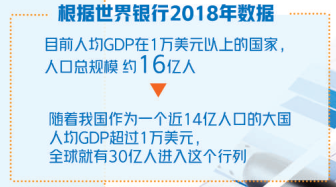 “这一经济规模的提升,不仅意味着人民收入增加、生活更加殷实,更是人类历史上的重大进步。”国家发展和改革委员会副主任兼国家统计局局长宁吉喆说,根据世界银行2018年数据,目前人均GDP在1万美元以上的国家,人口总规模约16亿人。随着我国作为一个近14亿人口的大国人均GDP超过1万美元,全球就有30亿人进入这个行列,这无疑将对全球产生积极的影响。