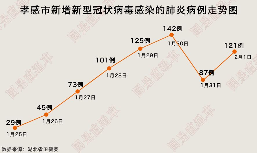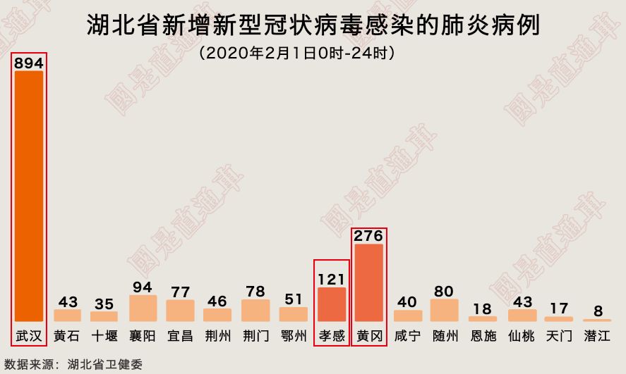 最新公布的数据是,2月1日0时-24时,黄冈市新增新病例276例,累计病例破千,达1002例;孝感市新增121例,累计749例。