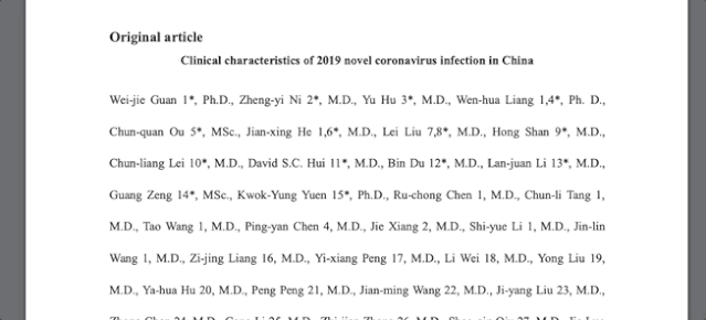 没有精致的排版, 只有密密麻麻的文字,对2019-nCoV ARD的临床特征 (实验室确诊病例)进行了回顾性研究。