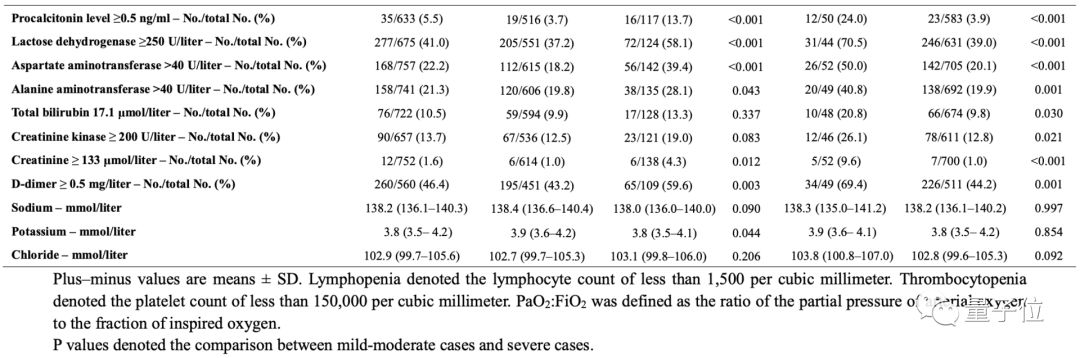 与非严重病例相比,严重病例具有更显着的数据异常,即白细胞减少,淋巴细胞减少,血小板减少,C反应蛋白水平升高(所有P值均小于0.05)。