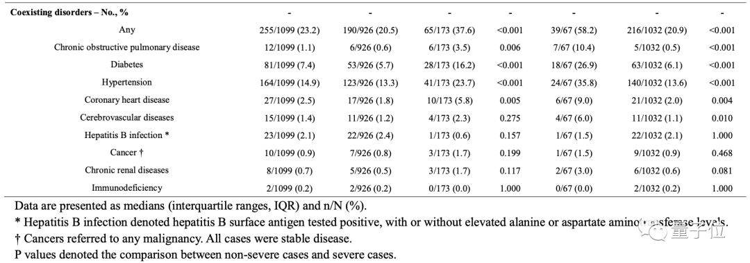 此外,与非严重病例相比,重症病例中任何潜在的疾病明显更为常见(38.2% vs. 22.5%, P<0.001)。< p="">