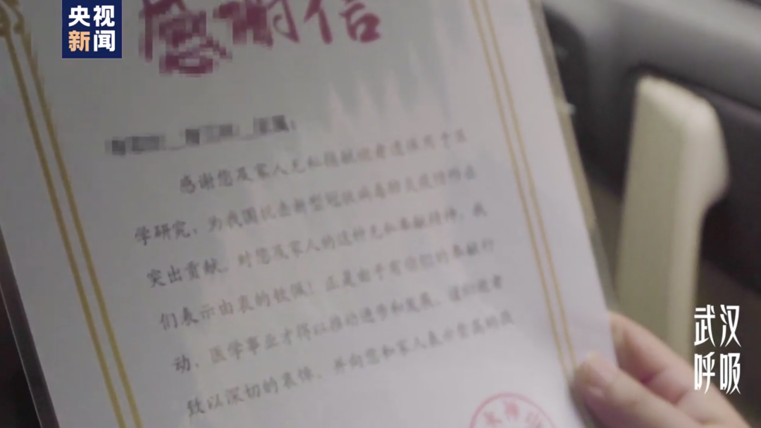 “感谢您及家人无私捐献逝者遗体用于医学研究,为我国抗击新型冠状病毒肺炎疫情作出突出贡献。对您及家人的这种无私奉献精神,我们表示由衷的钦佩!正是由于有你们的奉献行动,医学事业才得以推动进步和发展。谨向逝者致以深切的哀悼,并向您和家人表示崇高的敬意!”