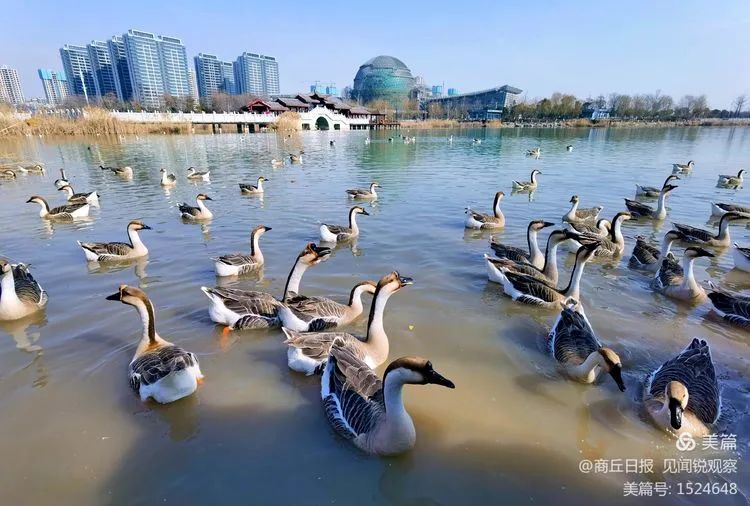 又一个春天来了。商丘好人主题公园东侧日月湖里,那群鸿雁似乎精神大振,嘎嘎欢叫,振翅欲飞。