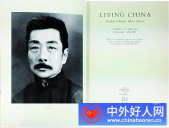 埃德加·斯诺编译的《活的中国——现代中国短篇小说选》一书封面及扉页鲁迅照片 资料图片