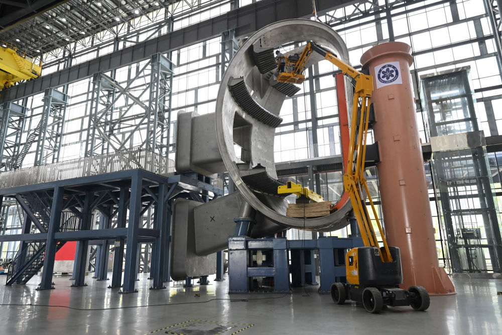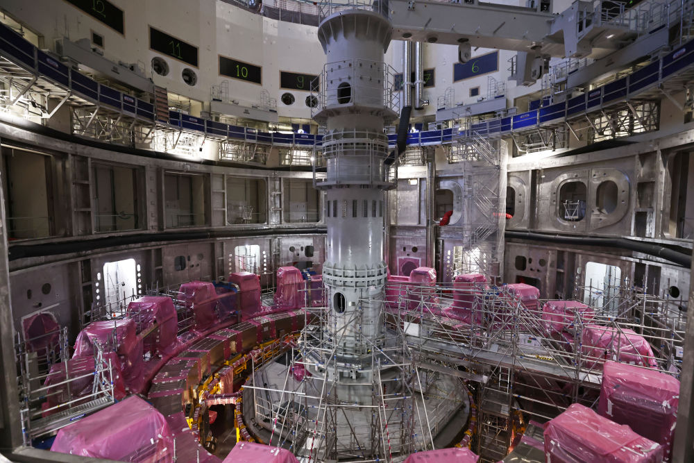 ↑这是在法国ITER项目建设现场拍摄的安装中的托卡马克装置。