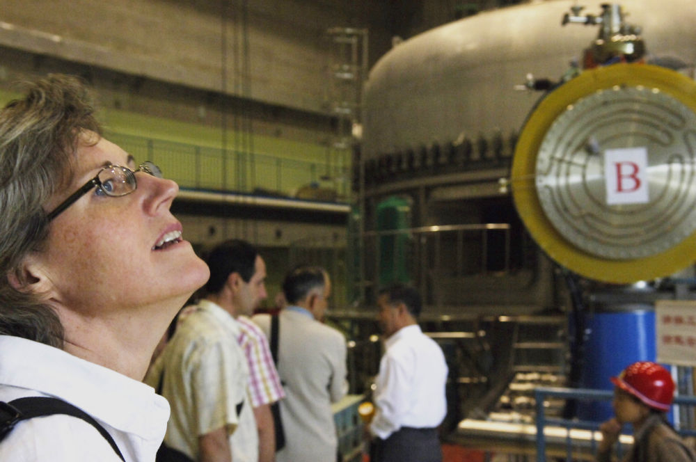 ↑2006年5月26日,参加第十七届受控聚变装置中等离子体与壁相互作用国际会议的近400名专家在合肥科学岛参观EAST。