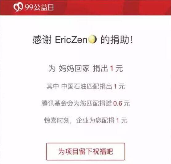 跟去年的1:1配捐(网友每捐1元,腾讯基金会配捐1元)不一样,今年原本定的是离线算法配捐。