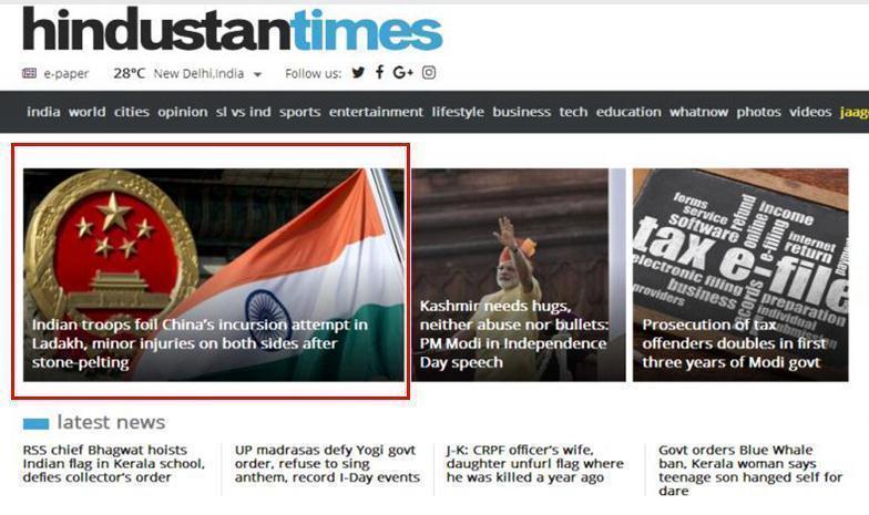 “中印士兵爆发新冲突!”“印军阻止解放军两次入侵!”16日一早,类似耸动的标题占据《印度时报》等多家印度媒体网站头条,起因是有“印度政府消息源”称,中印士兵15清晨在拉达克地区发生摩擦,双方互掷石块,且都有人受轻伤。但此消息不仅中方尚未证实,印度军方也不予置评。
