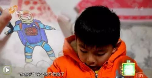 这是蒋小华八岁的儿子,给爸爸画了一身防护服,希望“爸爸穿上这个就不会危险了”: