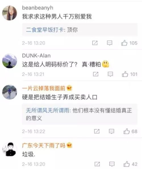 可以理解,这两年,随着最后一批90后成年,还房贷的八零后和被逼婚的九零后成为网络主流“悲情群体”,加之女权意识的觉醒,“婚恋”话题不出意料成了重雷区。