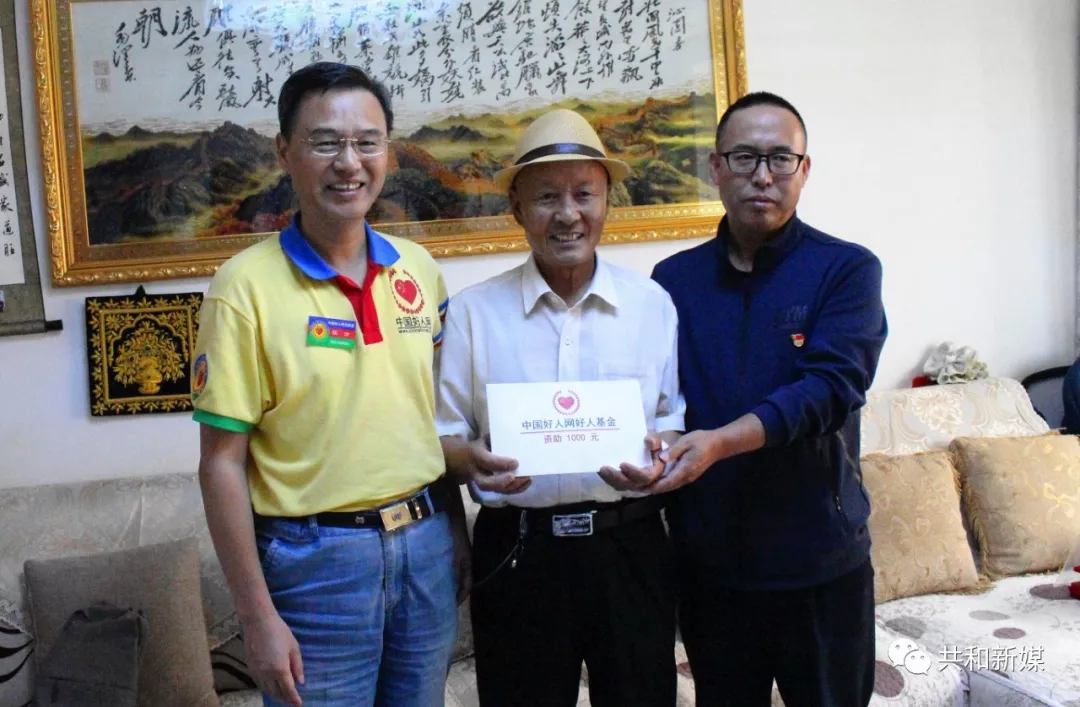 8月27日,由中国好人网创办人、总干事谈方、中国好人网志愿者联合会赣州分会秘书长杜露,中国好人网志愿者、青海西宁市大通县扶贫办工作人员孙保钰一行3人走进共和,看望慰问共和县荣登中国好人榜的退休干部、最美共和人杨兴林老人。