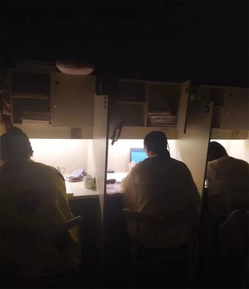 这种沉浸式自习室又被称为“小黑屋”,即便外面天还大亮,屋里也一片漆黑,只有桌上亮着一盏灯,营造出一种“挑灯夜战”的“特效”。
