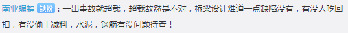 与此同时,部分网友也对“豆腐渣”的观点进行了批评,认为对事故的理解不能忽视修建时间与标准的关联性——“曾经的桥梁也是经过当年的各种标准(验收)的”。
