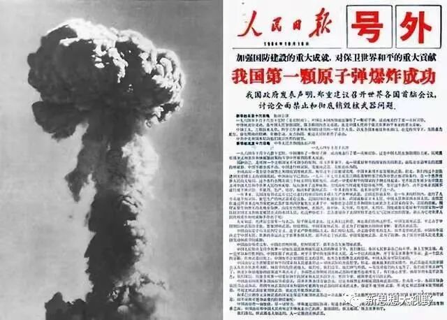 55年前的10月16日下午,世界两颗原子弹爆炸成功,第一颗,中国数年攻关,首颗原子弹爆炸成功。第二颗,中国共产党九评结束之后,从克里米亚休假归来的赫鲁晓夫,走下飞机时被宣布清除党中央。宣布下台,而Liu、Deng一九六一年写给毛主席要求”下马核武器”的报告,被毛主席长期扣压在办公桌上,写信人的意思,国家困难先不搞核武器。十大元帅闻之愤怒,拍了桌子。陈毅说,当了裤子也要搞。林彪说,就是点火柴也要让原子弹爆响。正是因为有了这个坚持,我们今天才不致于象伊朗朝鲜一样被帝国主义掐住脖子。