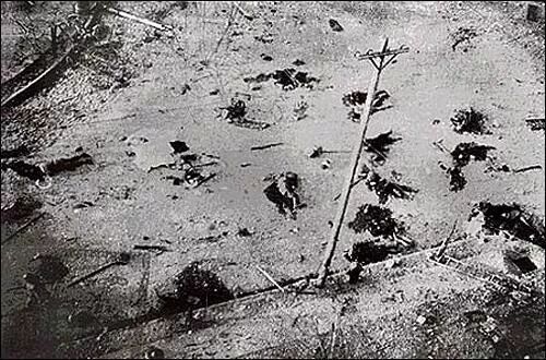 然而,他们看到的却是机关枪,或者手持血淋淋的军刀或刺刀等在一边的日本士兵,或者掩埋尸体的巨大坟坑,坑里堆满了先于他们被杀害的同胞的尸体,阵阵尸臭飘散出来,此时再想逃跑为时已晚。